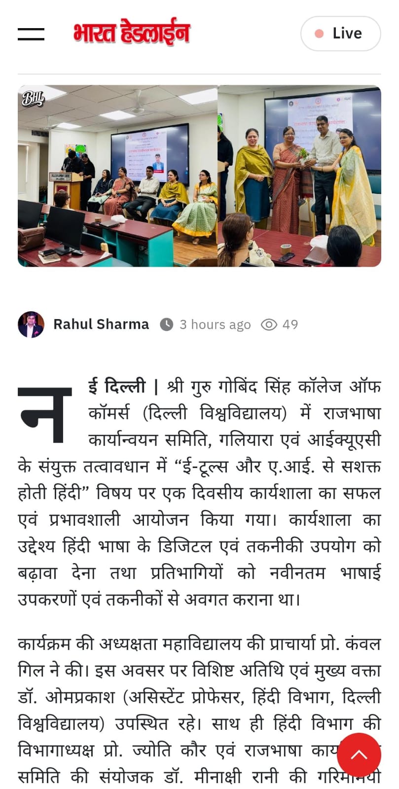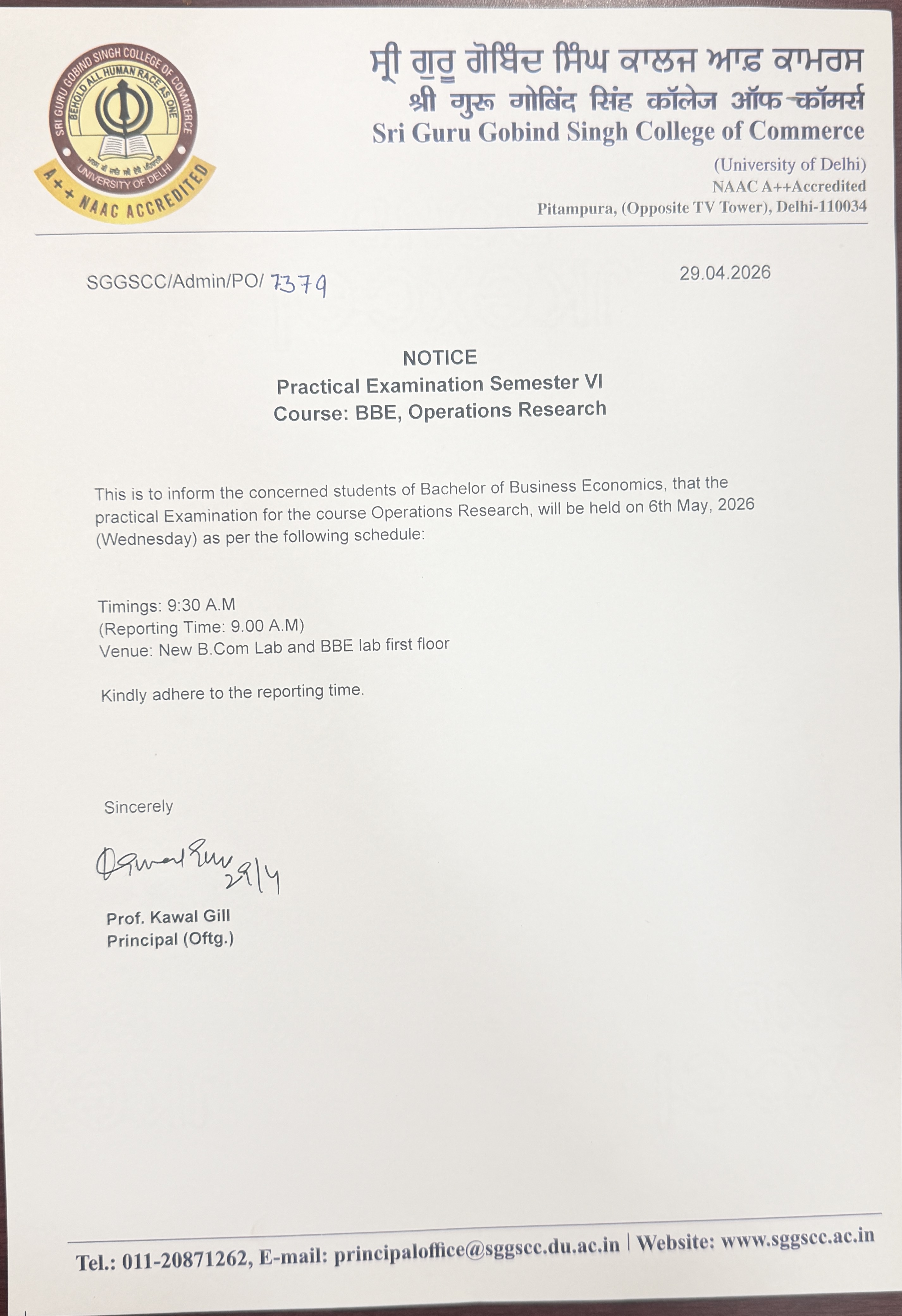 Sri Guru Gobind Singh College of Commerce is an institution of eminence, established as a centre of academic excellence, ethical leadership, and inclusive growth, inspired by the teachings of Sri Guru Gobind Singh Ji. My vision is ...