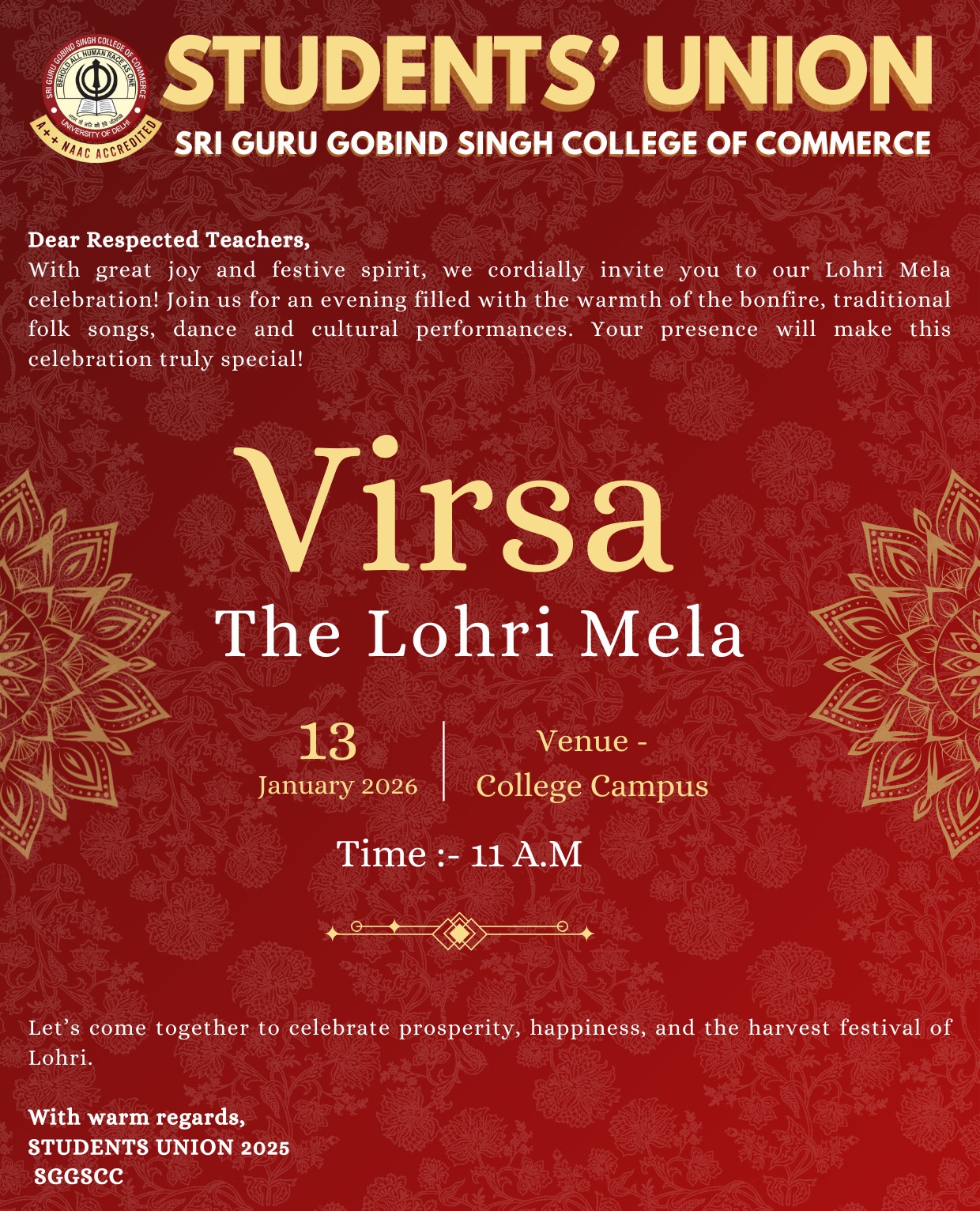 With the blessings of Dhan Dhan Shri Guru Granth Sahib Ji Maharaj, VISMAAD- The Divinity Society of Sri Guru Gobind Singh College of Commerce is organising Kirtan Samagam on the 556th Prakash Purab of Sri Guru Nanak Dev Ji On November 14, 2025